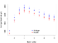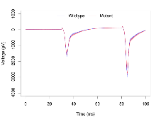 | Variable | Units | Wildtype slices (animals) | Wildtype mean (SEM) | Mutant slices (animals) | Mutant mean (SEM) | P(animals) | P(mutation) |