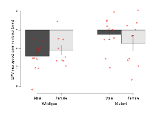 | EPM max speed, open vs closed | cm/s | -6.9 (1) | -5.4 (1.3) | -1.1 (1.5) | -3.5 (2.1) | 0.18 | 0.0076 ** |