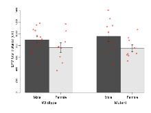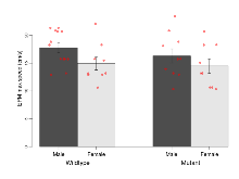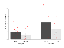 | Fear learning, tone effect | % freezing | -5.4 (6.1) | -4.8 (14.5) | -0.3 (5.7) | -9.2 (6.3) | 0.58 | 0.92 |