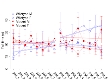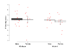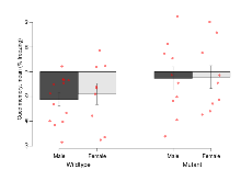 | Variable | Units | Wildtype M (n=13) | Wildtype F (n=9) | Mutant M (n=10) | Mutant F (n=9) | P(sex×mutation) | P(mutation) |