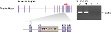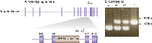 Total RNA was extracted from whole mouse brain using RNeasy Midi kit (Qiagen, Cat 75144). RT-PCR was performed by generating first strand cDNA and using a forward primer, Y GAGTCACAGTTACCTTCGAG), which anneals to exon 8 and a reverse primer, Z (CTTGTTGCTGTCTAGACTGTC), which anneals to exon 9. A product of 314bp was generated from WT cDNA and no product detected from homozygote cDNA where the exons have been replaced by the cassette.