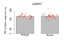 Variables shown are: PPF at 50ms, ampl ratio, Paired pulse facilitation (PPF), pulses separated by 50ms, amplitude ratio.