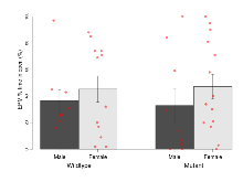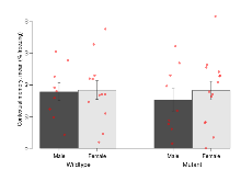 | Variable | Units | Wildtype M (n=9) | Wildtype F (n=12) | Mutant M (n=9) | Mutant F (n=14) | P(sex×mutation) | P(mutation) |