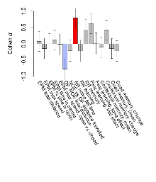 Mutant mice showed little overall behavioural difference from wildtypes, with two of 16 behaviour variables significantly impacted in these mutant mice. In the open field/novel object exploration task, one behavioural variable, OF NOE total distance, was significantly decreased in mutants. In the rotarod task, one behavioural variable, RR naive fall time, was significantly increased in mutants. Elevated plus maze, fear learning, contextual memory and cued memory tasks were unaffected. Definitions of variables may be found below.