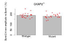 | Burst 1, PPF at 10ms, ampl ratio | % | 23 (7) | 208.1 (8.9) | 24 (8) | 197.6 (7.4) | 0.093 | 0.47 |