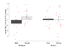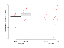| Cued memory, mean | % freezing | -4.5 (6.4) | 7 (4.8) | 1.2 (6.9) | -2.1 (6) | 0.24 | 0.62 |